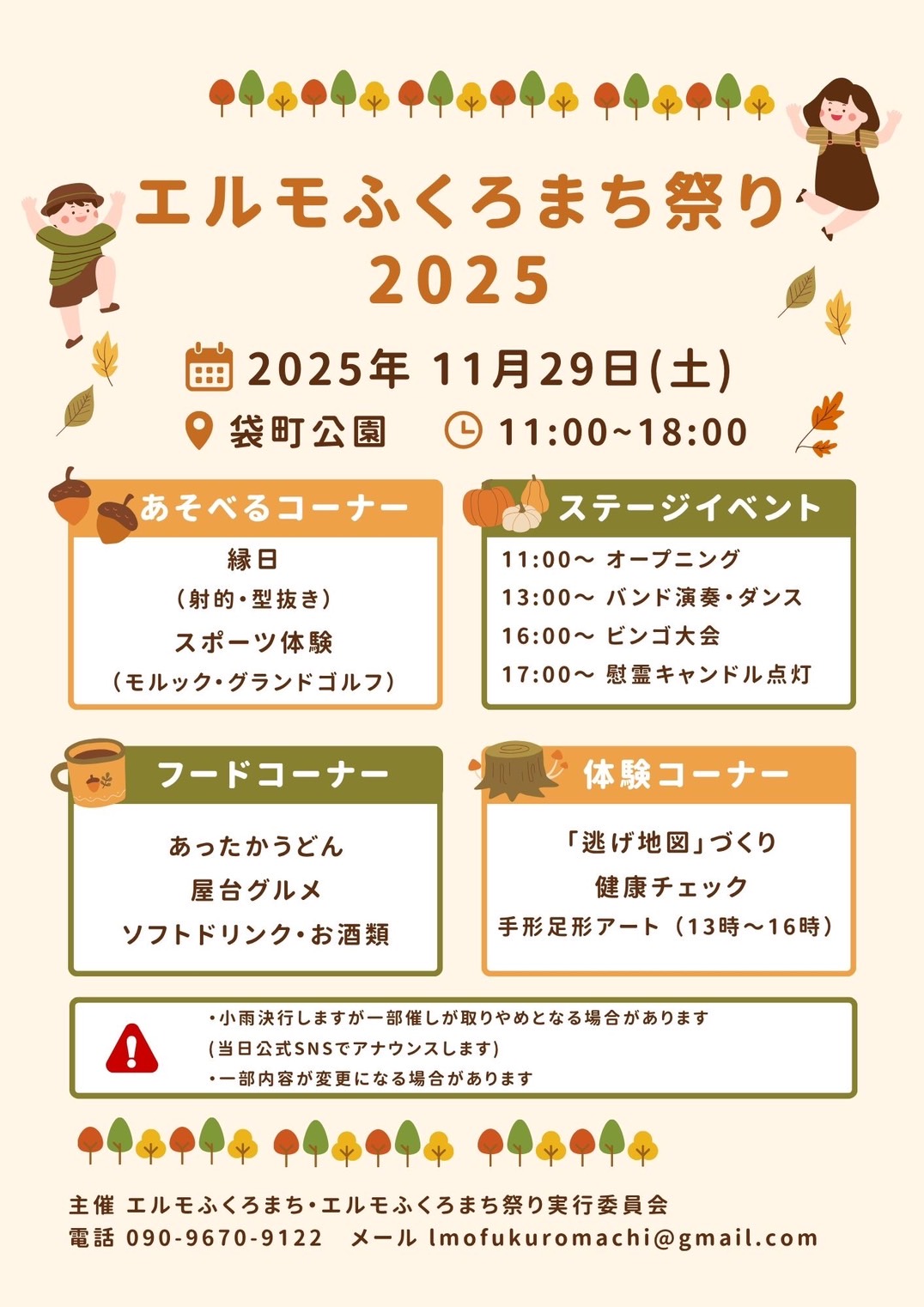 2025年11月29日(土)エルモふくろまち祭り2025のイベントに出演します。場所:袋町公園時間:11時〜18時※楓子の出演は、15時〜の予定です。