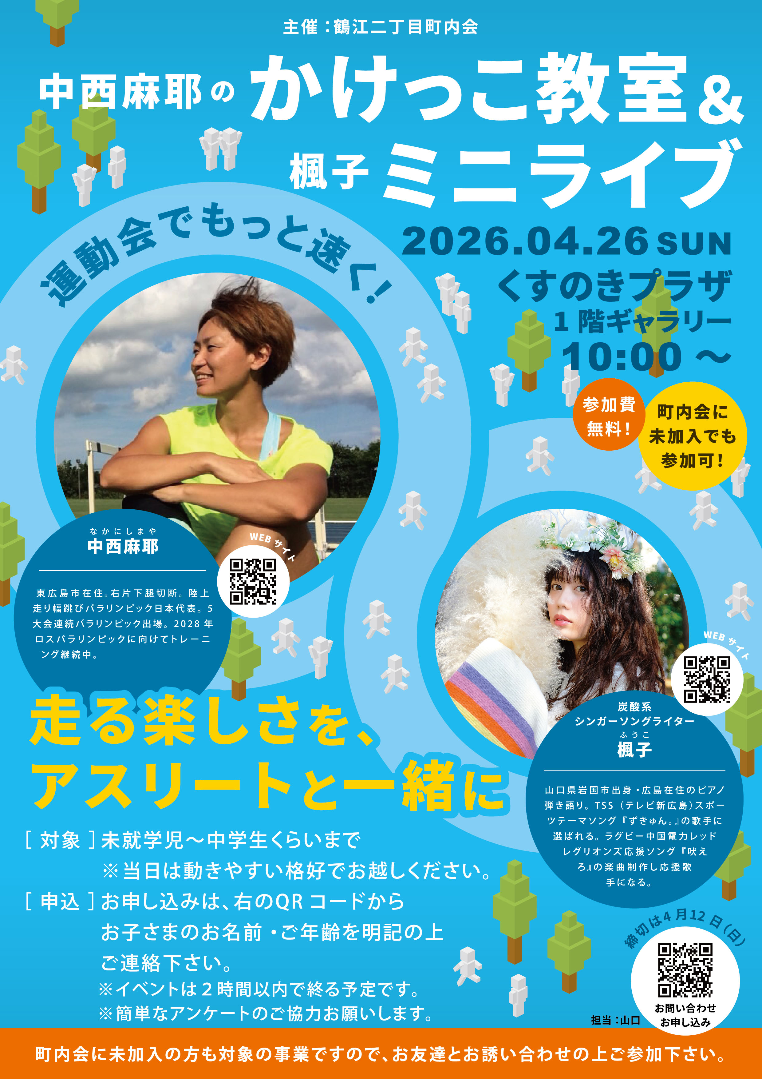 中西麻耶のかけっこ教室&楓子ミニライブ(観覧無料)
